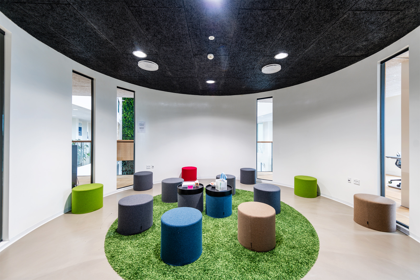 I mødelokalet Hindø kan du rigtigt være kreativ. Hindø er nemlig ikke et traditionelt mødelokale, men et rum der indbyder til kreativ idéudvikling. I stedet for almindelige borde er Hindø indrettet med puffer og små, runde borde. I alt er der plads til ti personer.