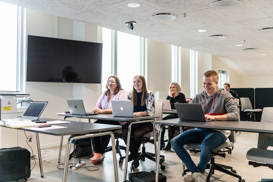 Nogle studerer i Aarhus, Aalborg eller København via fjernstudie, men har deres daglige gang i Innovest. Her modtager de undervisning via livestreaming, eller de er måske i gang med at skrive en opgave eller en kandidatafhandling.